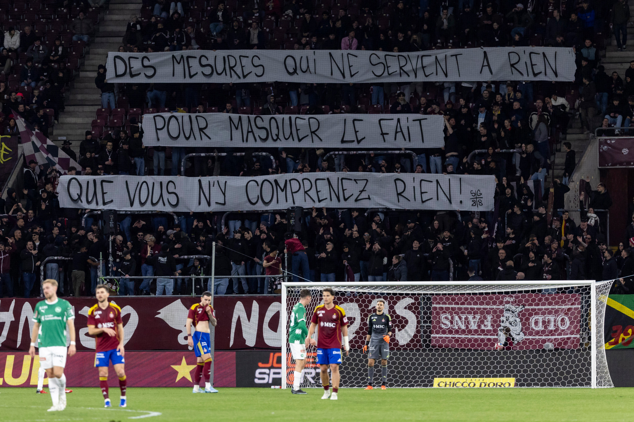 Pas de fumigènes, sinon du côté saint-gallois samedi soir au stade. En revanche, des banderoles pour dénoncer une «répression généralisée».